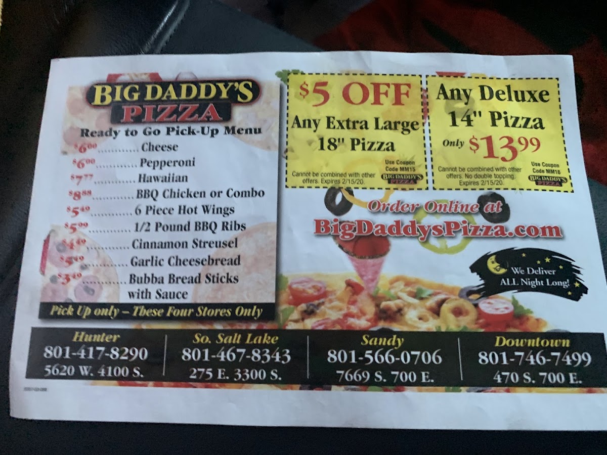 Introducing the menu at Big Daddy's Pizza - Sandy, located in the heart of Sandy, Utah. This eatery is a haven for pizza enthusiasts, offering a diverse range of mouthwatering options. From the classic Cheese Pizza featuring marinara sauce and an abundance of cheese to the delightful Hawaiian Pizza topped with savory ham and pineapple, every dish promises a burst of flavor.